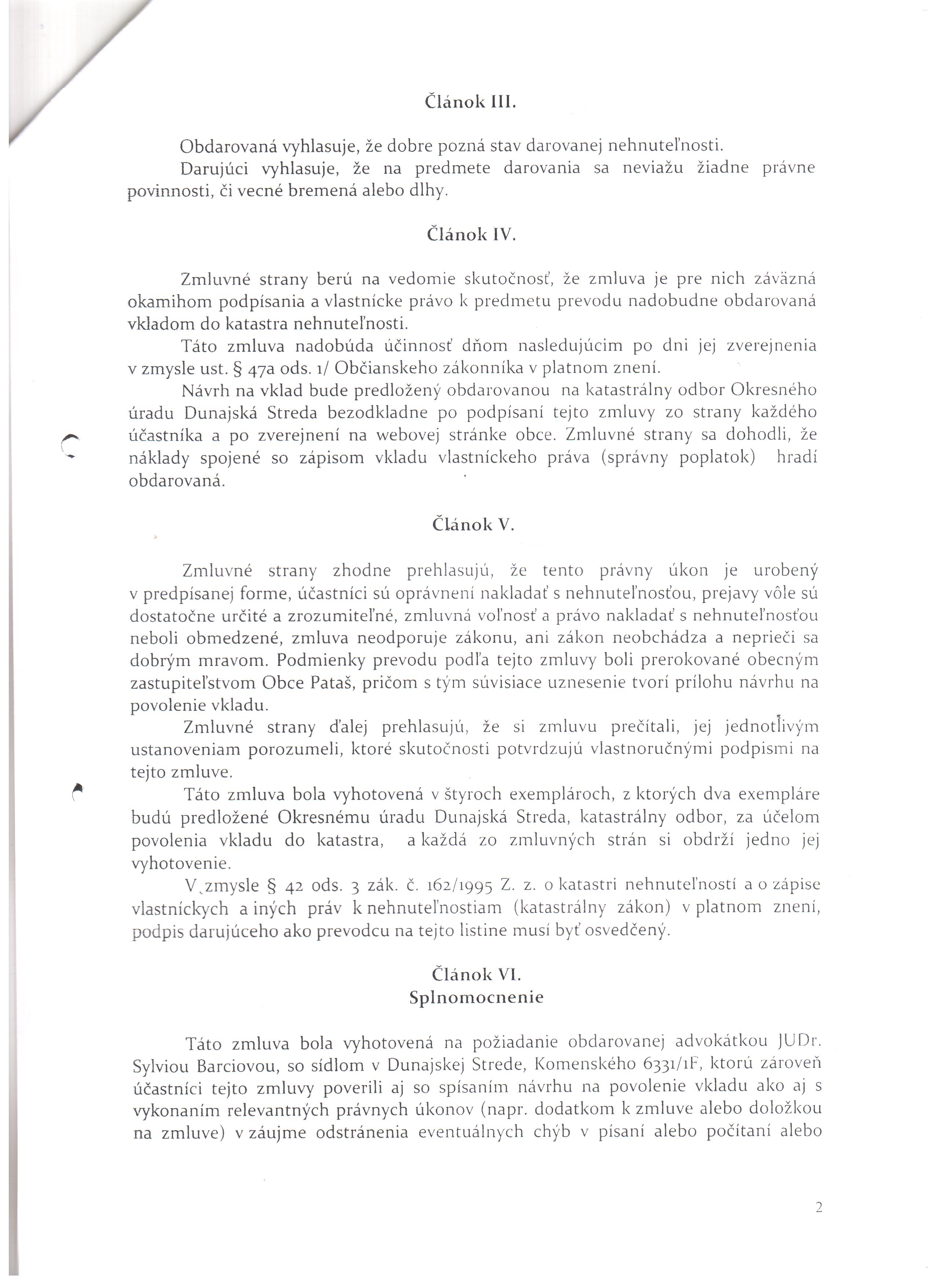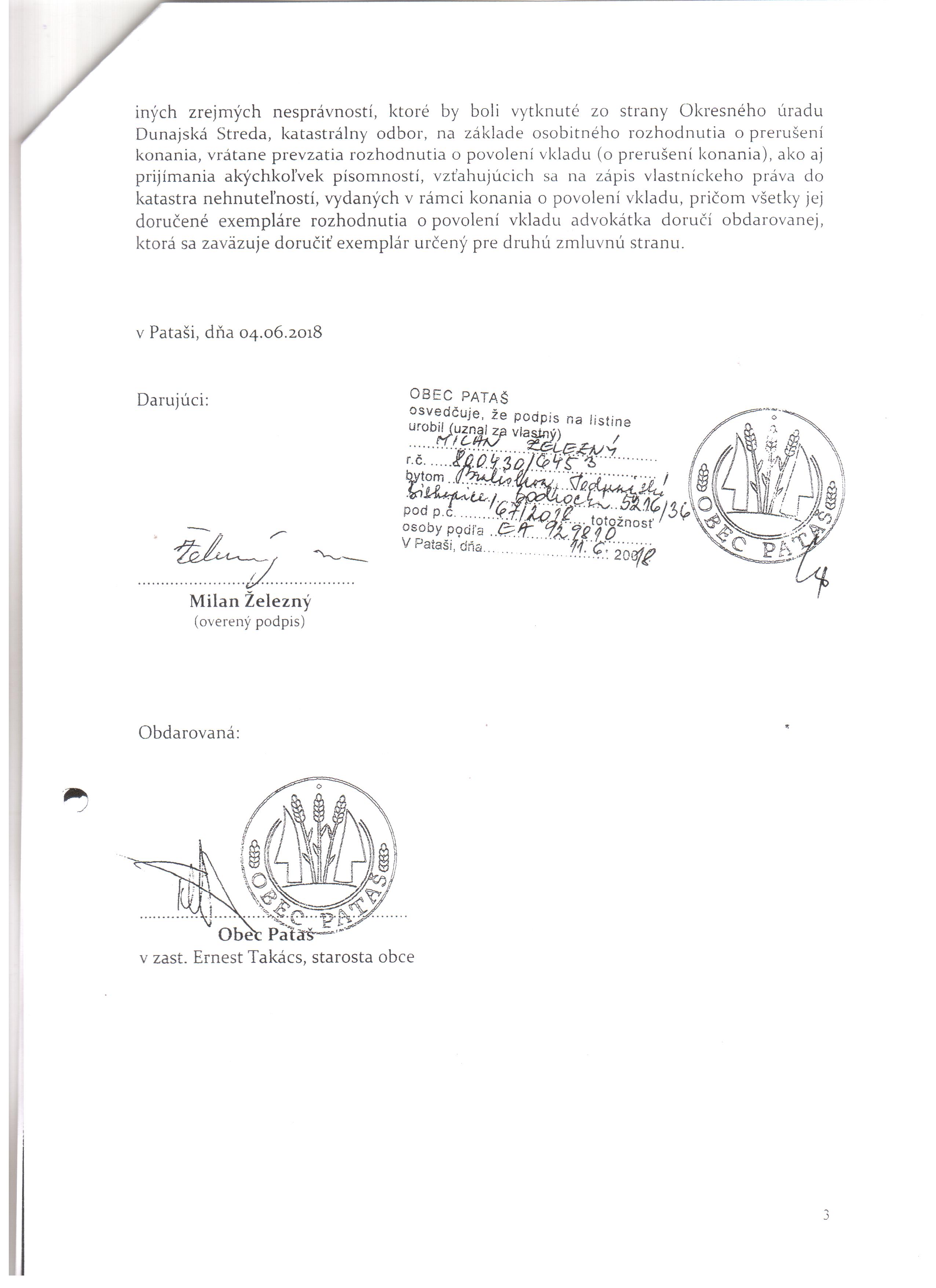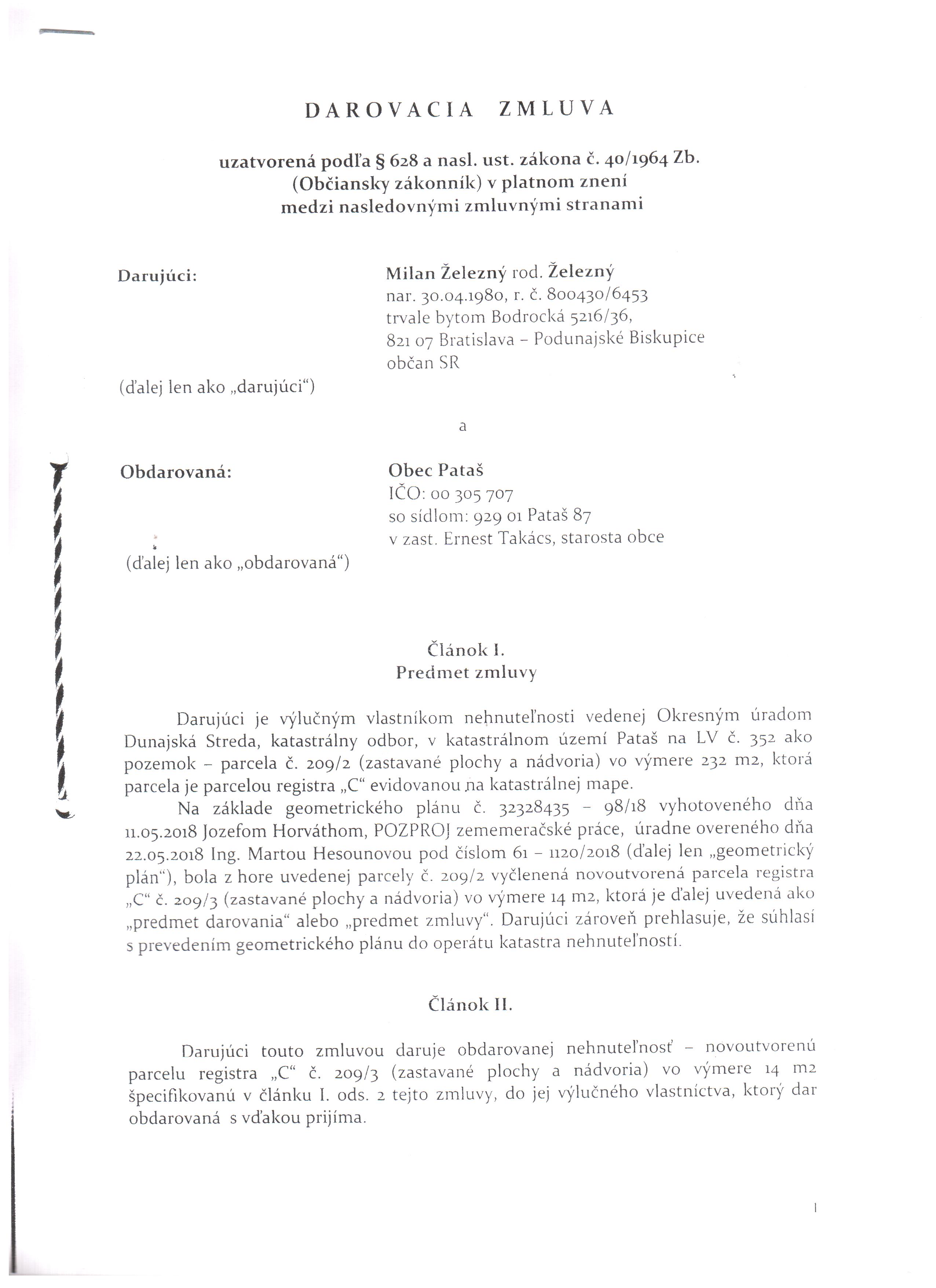 Darovacia zmluva Železný - Obec